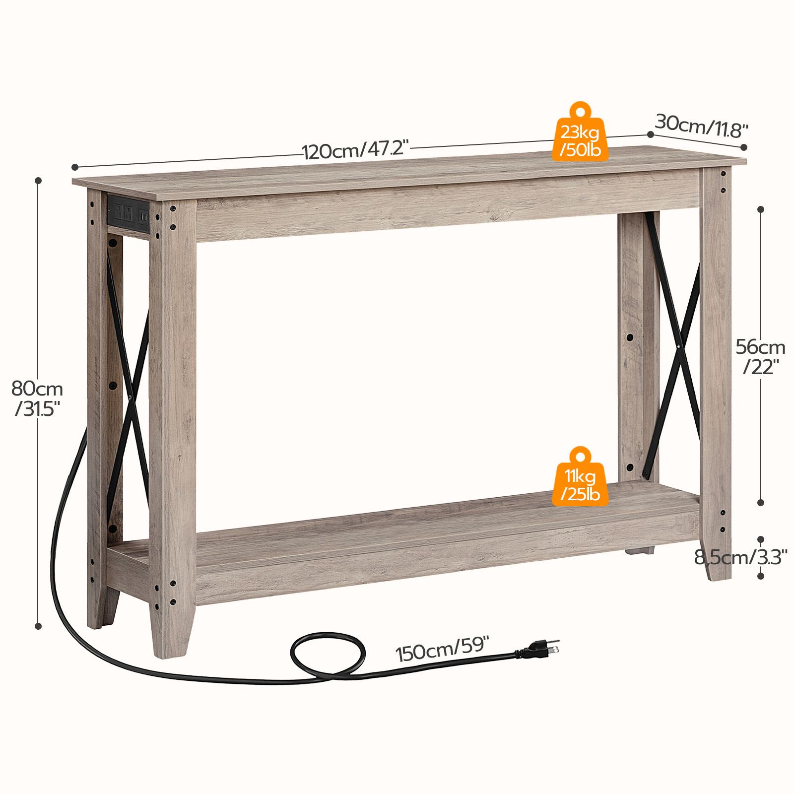 Серый узкий консольный столик с розетками и USB-портами, 2-Приставной столик для дивана в прихожей для прихожей и гостиной