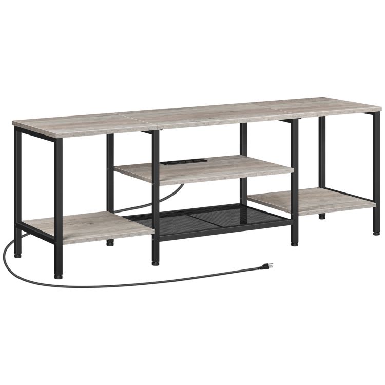 Серый телевизор с силовыми розетками, чтобы 65 дюймы, ТВ -консольный стол с открытым шкафом для хранения, Промышленные медиа -развлекательные центра для спальни гостиной, Грейдж и черный