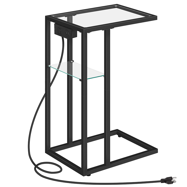 C Контрольный стол с зарядной станцией, tempered glass sofa couch side table with metal frame, c snack table for small spaces, гостиная, Спальня, общежитие, современный стиль, black bk08usf01