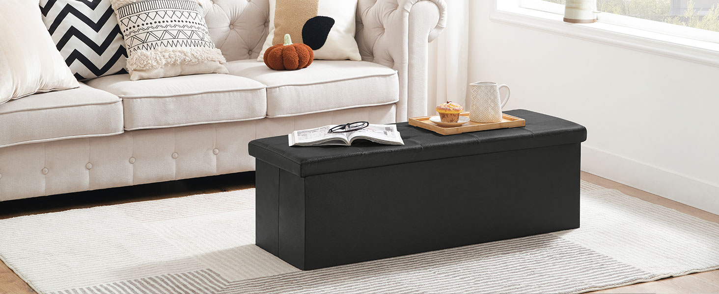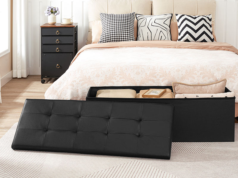 43.3 дюймы складывающейся османскую скамейку, сундук для хранения, нога, кофейный столик, Мягкое сиденье, Обитый верх, держит до 660 фунт, Для гостиной, Спальня, прихожая, черный
