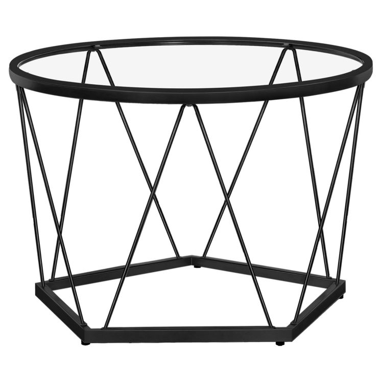 Кофейный столик, Черный стеклянный журнальный столик для гостиной, 27.6" Круглый журнальный столик, 1 Таблица центра слоев, Металлическая рама, Шестиугольный дизайн, для небольшого пространства, Приемная, Квартира, Черный