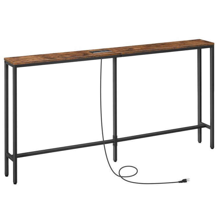 Тощий консольный стол с мощными розетками, 63" Узкий диван, За столом дивана со станцией заряжа, Стол для прихожей дивана для растений, гостиная