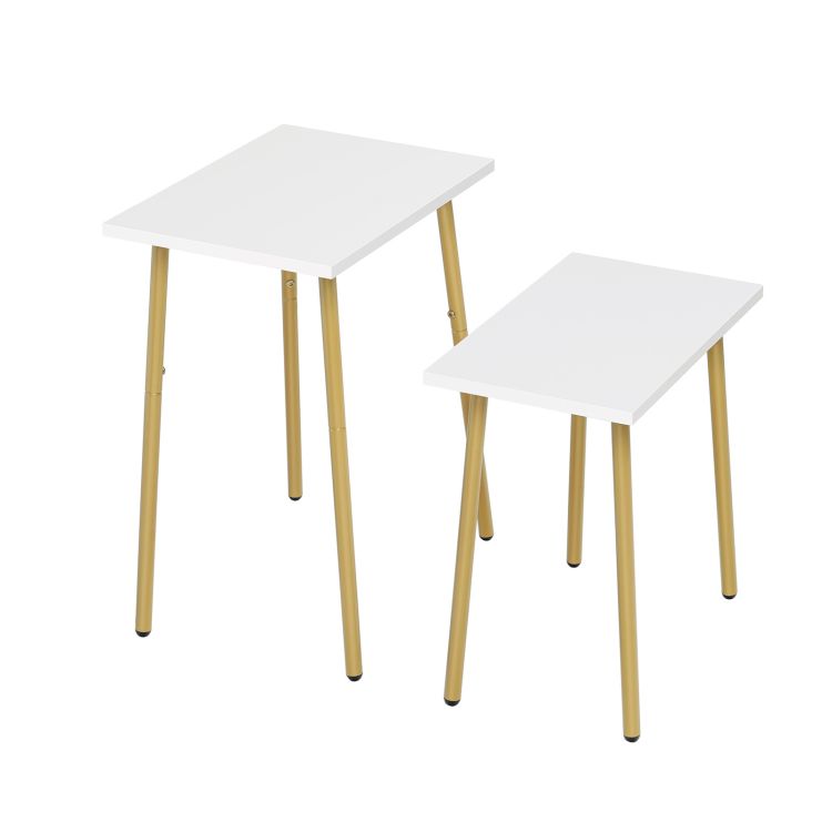 Набор торцевых столов 2, Маленький белый столик для домашнего декора, Современные тумбочки для гостиной, Спальня, Балкон, Белый и Золотой