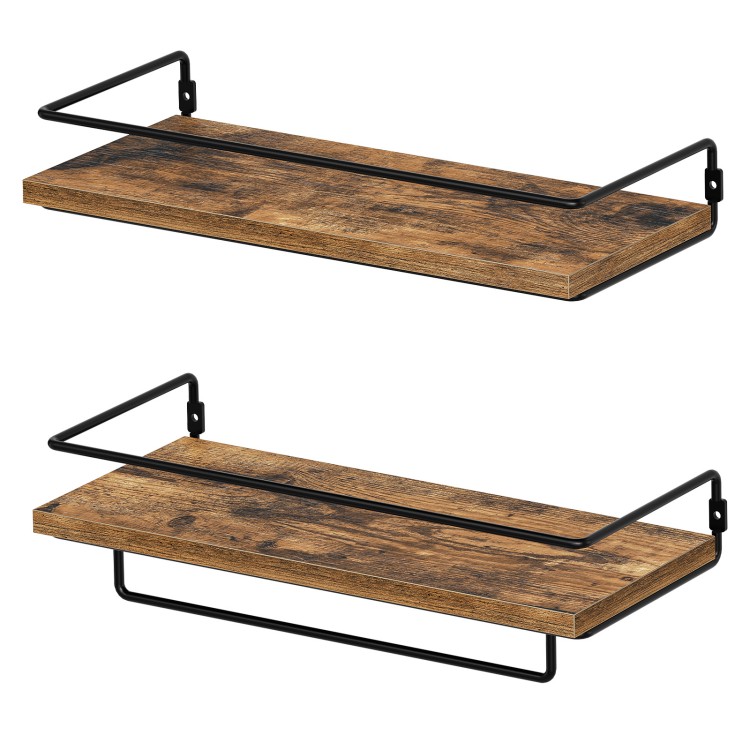 плавающие полки, настенные полки набор 2, полки хранения с корпусом, декоративные полки с висящим стержнем, Для гостиной, кухня, ванная комната, rustic brown and black fs12br