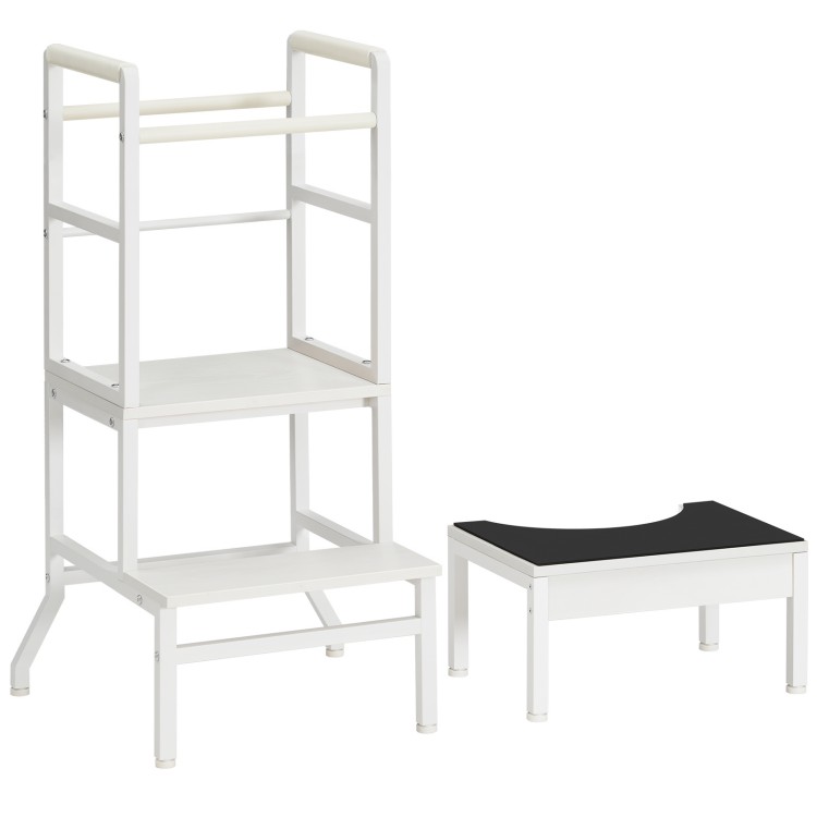 Детская кухонная табуретка с защитной рейкой и табуреткой для унитаза, 2-Кухонный табурет для малышей в-1, стоячая башня и табурет-ступенька для детей, Помощник в обучении для малышей 18+ Месяц, Белый