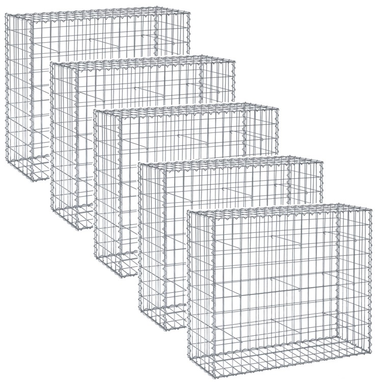 5 x Gabion Stone Casket 100 Икс 30 Икс 95 cm Galvanised Steel for Garden Decoration Silver with EWS19GBP502 Spacers