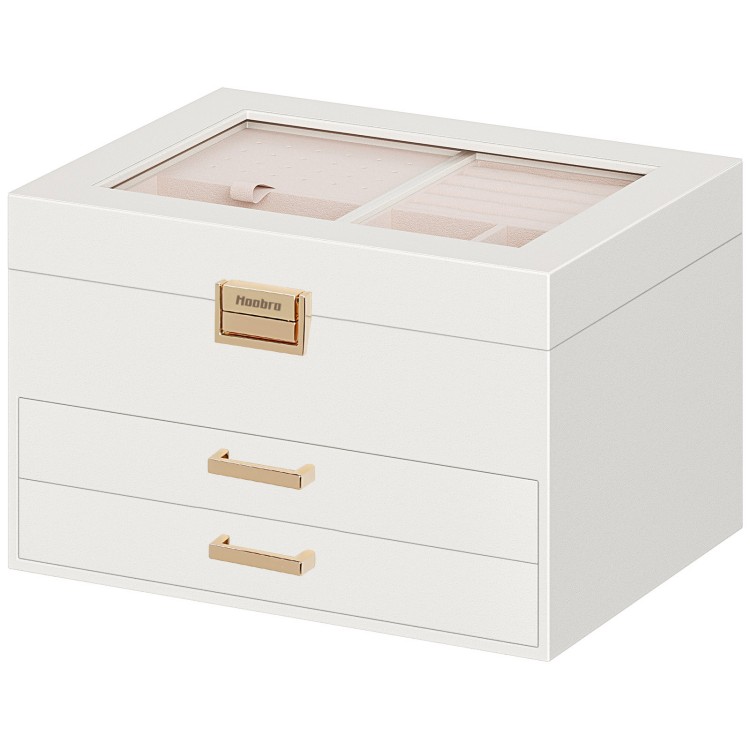 Ювелирная коробка со стеклянной крышкой, 4 Коробка-органайзер для ювелирных изделий Layers, Органайзер для ювелирных изделий, Ювелирный футляр для сережек, Кольцо, Ожерелье, Браслеты, Подарок для любимых, Белый