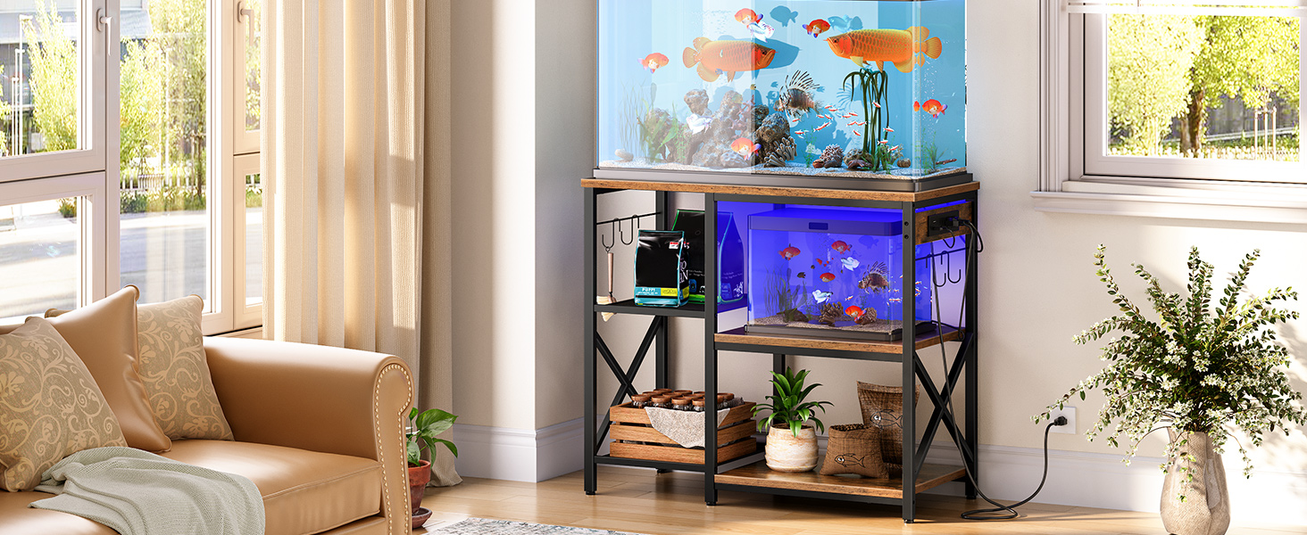 - Simple and Versatile: With a classic and concise color scheme and exterior design, this tank stand exudes a rustic farmhouse flair. Ideal for use as a aquarium stand, or to place plants, dekorácie, atď., the multifunctional fish tank stand seamlessly integrates into your home space