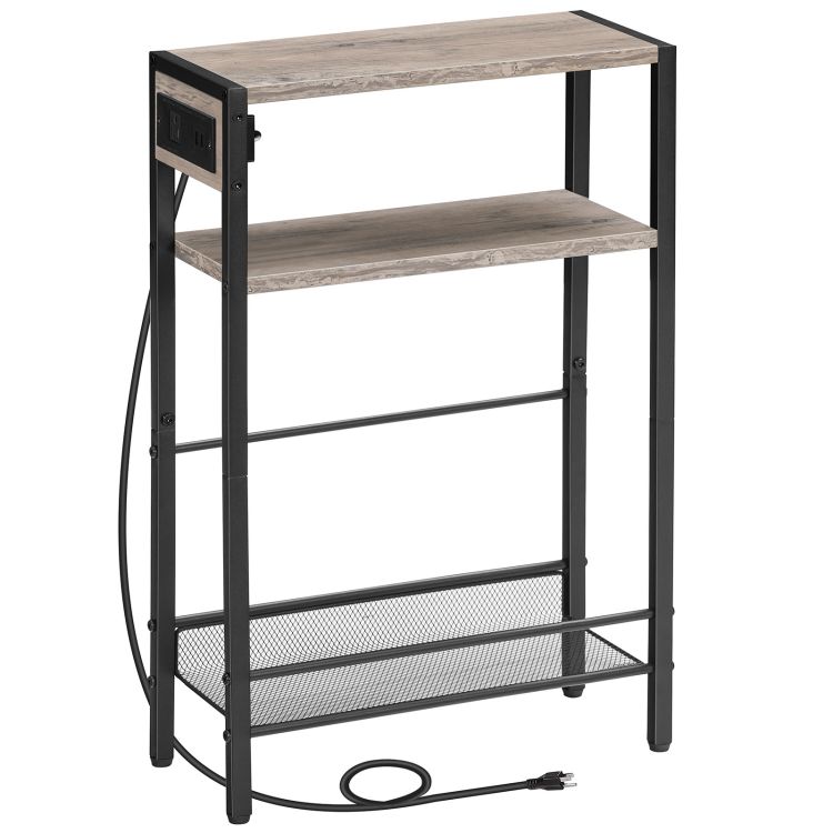 Malý úzky bočný stôl s nabíjacou stanicou, Skinny koncový stôl pre malé priestory, Tenký nočný stolík s výstupom portov USB, Pohovka vedľa stola s skladovacími poličkami, Greige a čierna