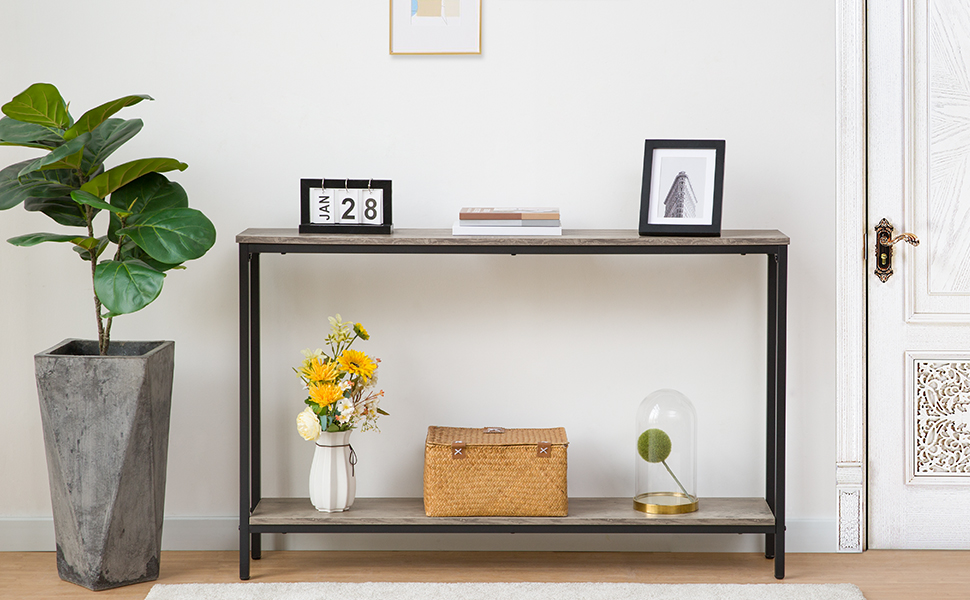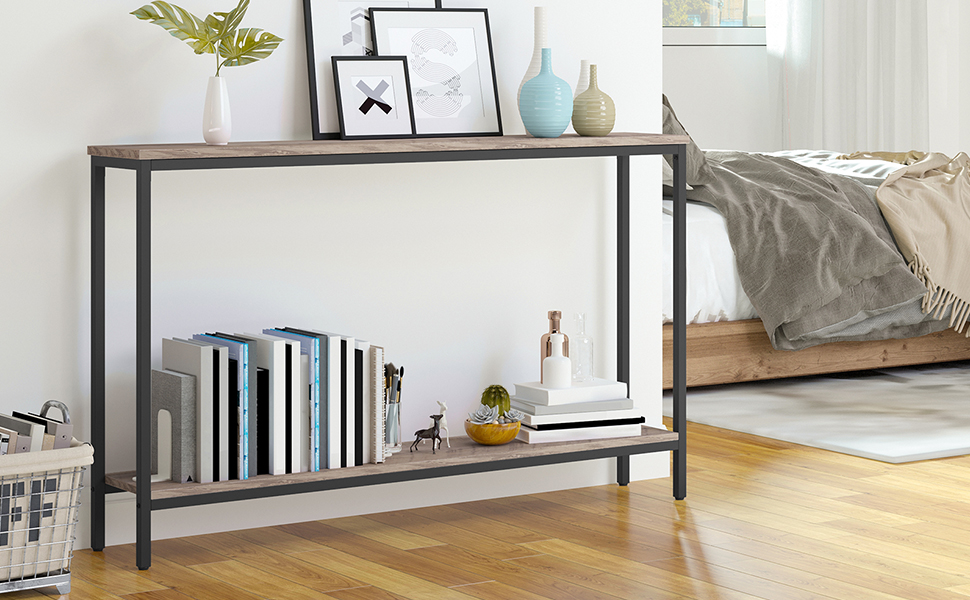 Tabuľka konzoly, 47.2″ Vstupný stôl, Priemyselný úzky rozkladací stolík s policou, Vstupný stôl do obývačky, Predsieň, Foyer, Chodba, Kancelária, Prízvuk v drevenom vzhľade