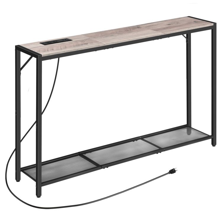 sofa table with power outlet, 43.7" console table with usb ports, za gaučovým stolíkom, vchodový stôl pre obývaciu izbu, vchod, foyer, kovový rám, nastaviteľné nožičky, greige cthg11e01z1