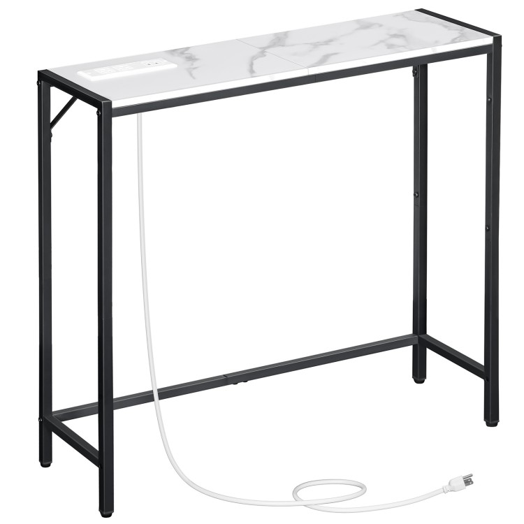 Malý stôl konzol s elektrárňou, 30.1” entryway table, za stolom pohovky, priemyselný štýl, výstupy a USB porty, robustný, do obývacej izby, vchod, foyer, chodba, marble cthm76e01