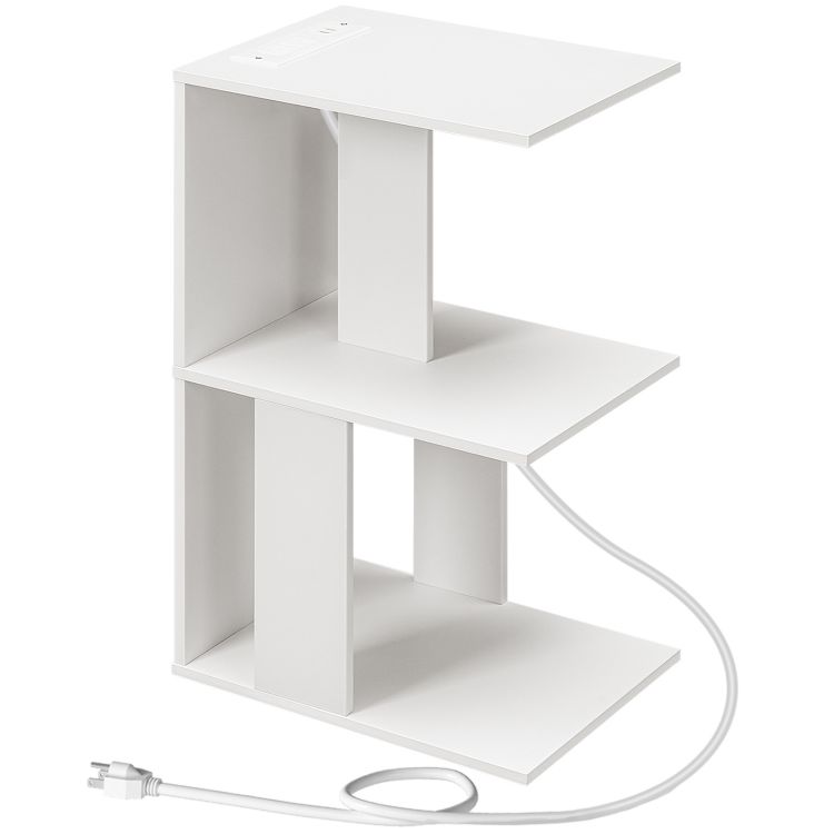 Koncový stôl s nabíjacou stanicou, Úzky bočný stolík do malých priestorov, Pohovka na pohovku s poličkou na úložné priestory, Štíhly nočný stolík vedľa stola do spálne, Obývacia izba, Biela