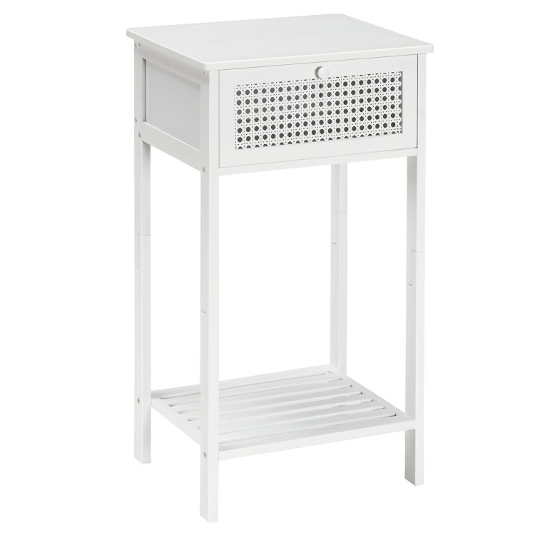 Koniec tabuľky, Bambusový bočný stôl so zásuvkou, Rattan nočný stolík pre malý priestor, Vysoký nočný stolík, Telefónny stôl ľahko zostavovateľný, pre Spálňu, Obývacia izba, Študovňa, White WT109BZ01