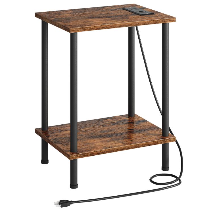 şarj istasyonlu yan masa, USB bağlantı noktaları ve çıkışlı son tablo, Küçük alanlar için 2 katmanlı depolama rafları ile komodin, oturma odası, yatak odası, kararlı çerçeve, rustik kahverengi