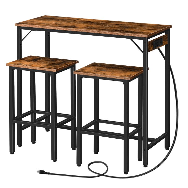 Power çıkışlı yuvalama çubuğu tablosu seti, Bar masası ve sandalyeler seti, 3-parça pub masa seti, tabureler ile mutfak barı yükseklik masası 2, oturma odası için, yemek odası