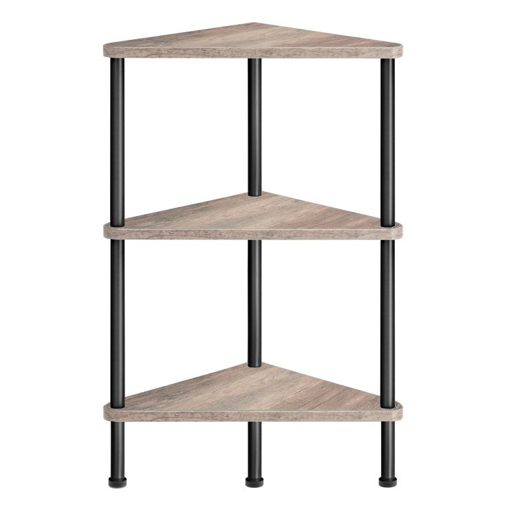 Köşe Rafı, Metal çerçeveli endüstriyel 3 katmanlı duvar köşe kitaplığı, Köşe Raf Standı Teşhir Bitki Çiçeği, Küçük Mekanlar İçin Köşe Kitaplık, Oturma odası, Greige ve Siyah