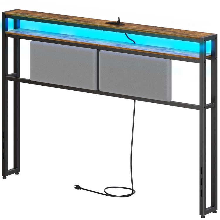 Sadece Kral Boyut Başlık, LED ışığı ile döşemeli yatak başlık, USB bağlantı noktaları ve 2 satış noktaları, Sağlam Başlıklar Kral Boyutu Depolama, ayarlanabilir yükseklik, Kolay montaj, Rustik kahverengi ve siyah