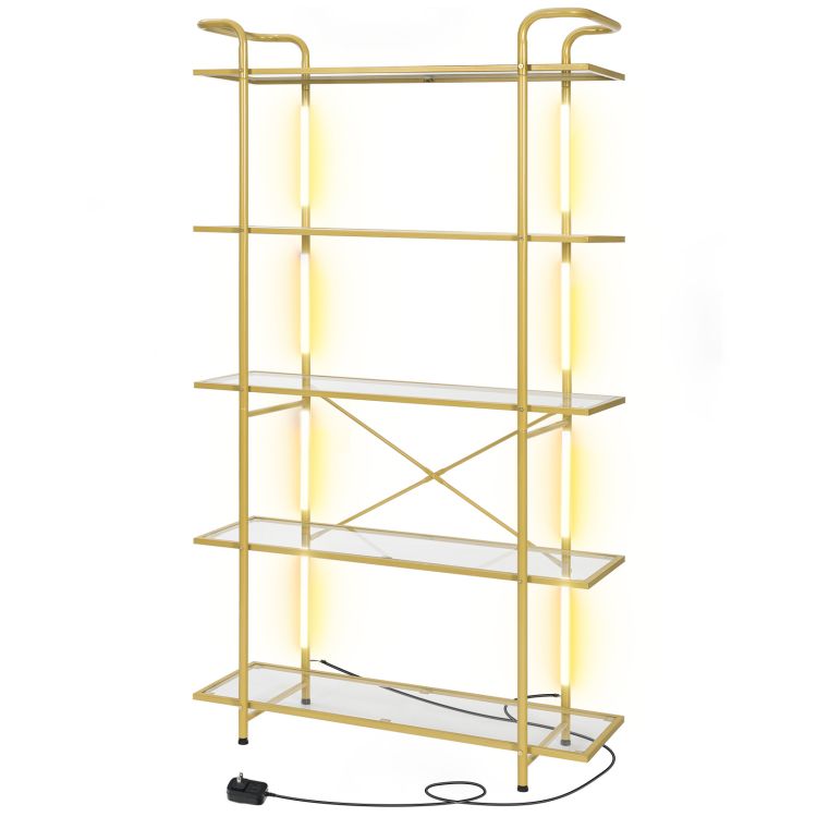 5-Katman LED kitaplık, Modern endüstriyel kitaplık, Temperli cam kitap rafları, Büyük açık raf kitaplığı, Yatak odası için ışıkları olan cam ekran rafı, oturma odası, ofis, altın gd180dusj01