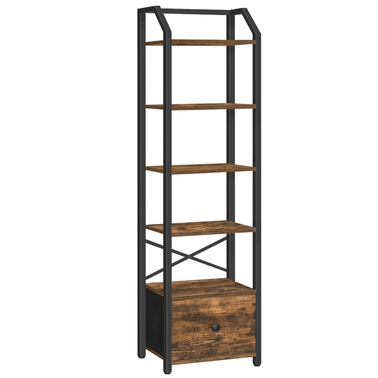6 katmanlı kitaplık, Çıkarılabilir çekmeceli rafı kitap, Raflı uzun dar kitaplık, Ayakta Ekran Rafı, depolama düzenleyicisi, yatak odası için, ev, Rustik kahverengi ve siyah