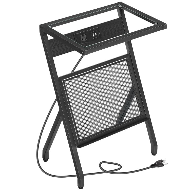 Приставний стіл, Z-подібний кінцевий стіл із станцією зарядки, Сучасний столик для телевізійних лоток з стелажами журналів, Загартовано скло невеликий журнальний столик для невеликого простору, Спальня, Офіс, Вітальня, Чорний BK28UBZ01
