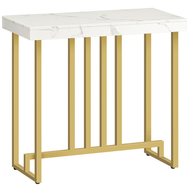 - Унікальний дизайн: this console table features a sleek white marble-textured top with a golden frame, випромінює елегантність і скромну красу. the table's versatility allows it to be placed in any setting, elevating the space with artistry and practicality