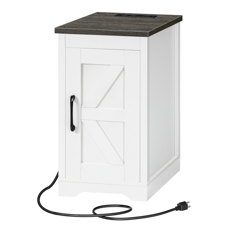 Кінцевий стіл фермерського будинку з станцією зарядки типу-С, Стіл ліжка з дверима сараю та регульована полиця, тумбочка з USB&Порти Type-C, диванний столик, для спальні, білий
